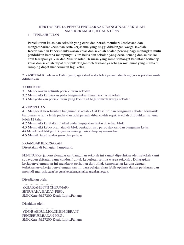 Kertas Kerja Penyelenggaraan Bangunan Sekolah Pdf
